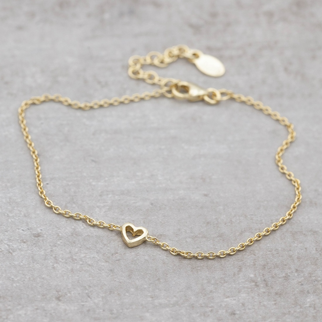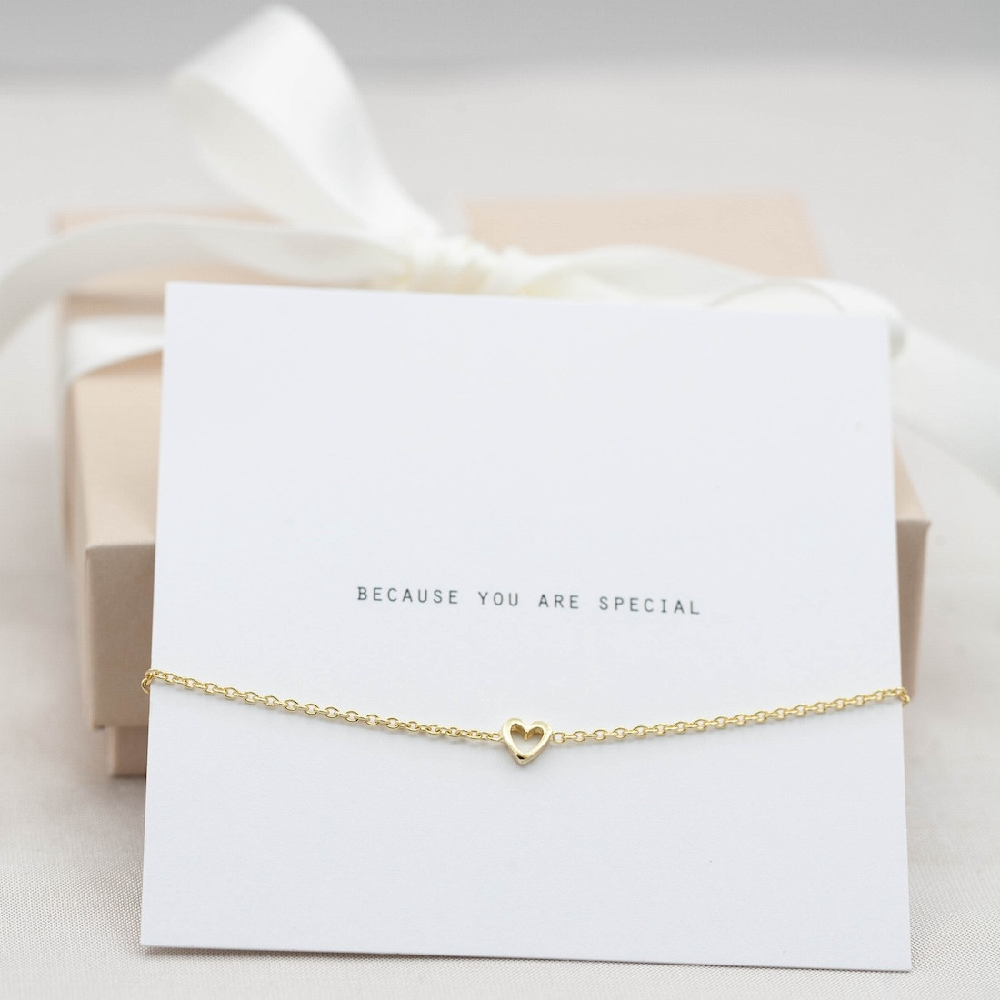Produktbeskrivning:Tidlöst och klassiskt förgyllt silverarmband med ett litet nätt hjärta. Kommer med tillhörande text- "Because you are special"