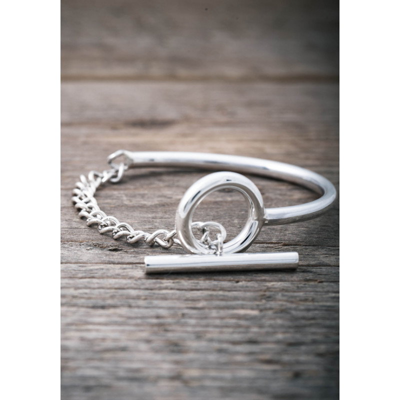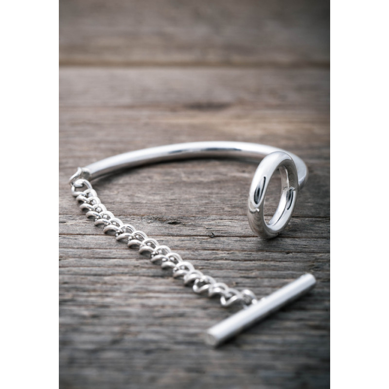 Coolt armband med T-lås. Hälften stel armring och hälften kedja.