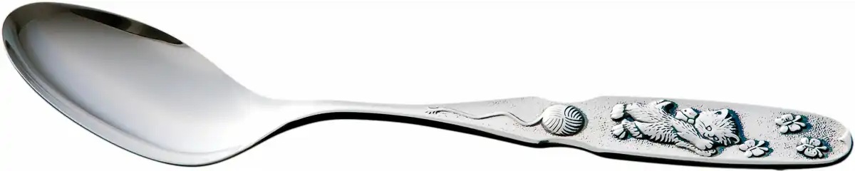 Produktbeskrivning:Ett klassiskt silverbestick för barn med ett sött motiv av kattungen Nøste som leker med fjärilar. Med skeden följer en porslinstallrik med matchande motiv.