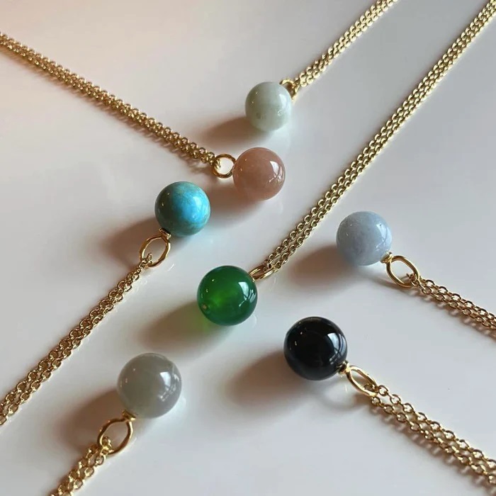 Alla ädelstenar är individer och kan skilja sig lite från varandra i färg. Modellbilden visar variant med grön agat.