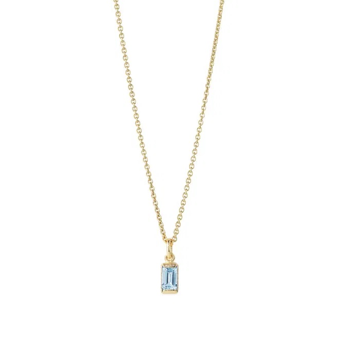 Fyrkantigt hänge i 18k guld med 6x4mm Sky blue topas.