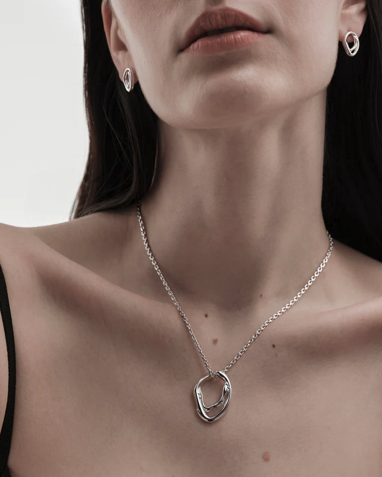 Produktbeskrivning:Den skulpturala Männyt (finska för tallar) hängsmycket är gjord av återvunnet silver.