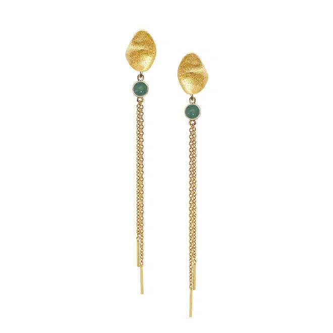 Örhängen med aventurin, frostad platta och dinglande länkar i förgyllt silver.