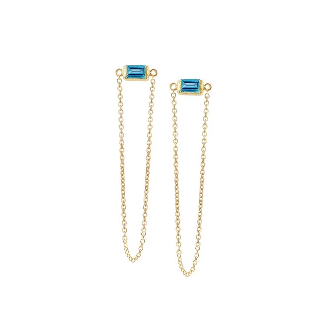 En liggande blå topas med kedja som hänger ner. Härligt blickfång till fest!