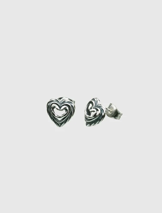 De små silverörhängena med hjärtat är lätta att kombinera med alla Kalevala klassikers smycken. Stift i den övre delen av hjärtat. Örhängena finns också i guld och brons.