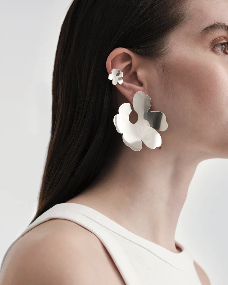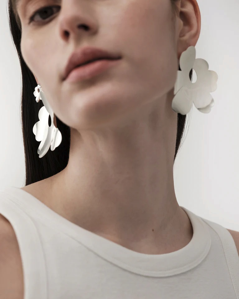 Produktbeskrivning:De stora Unikko-örhängena är riktiga blickfång. Trots sin storlek är de behagligt lätta att bära. Särskild uppmärksamhet har ägnats åt smyckets passform och detaljerna på silverytorna i designen. Örhängena är spegelbilder av varandra.